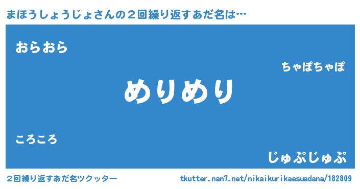 | ヘコむあだ名 | 『まほぷりん』『まほうしょうじょ(苦笑)』 |