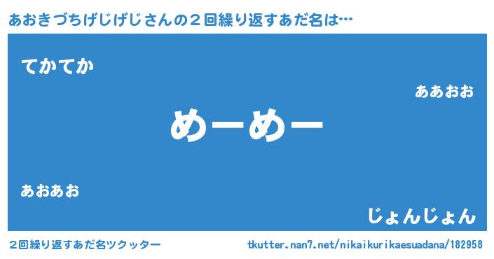 | 欧米人風あだ名 | 『ケンブリッジあおきづちげじげじ』 |