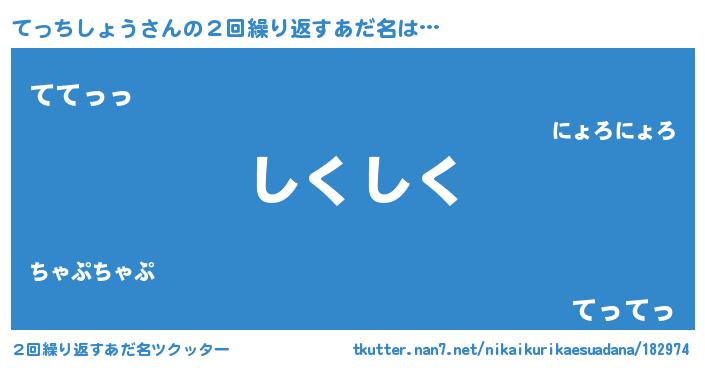 | 意味不明あだ名 | 『住所不定無職てっちしょう(62歳)』 |