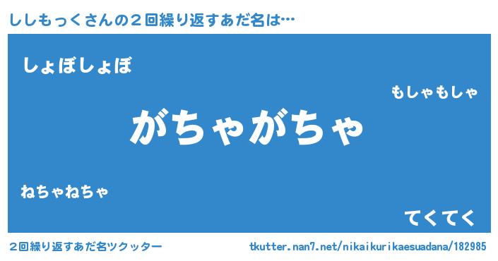 | 意味不明あだ名 | 『永久保存ししもっく』『自称ししもっく』 |