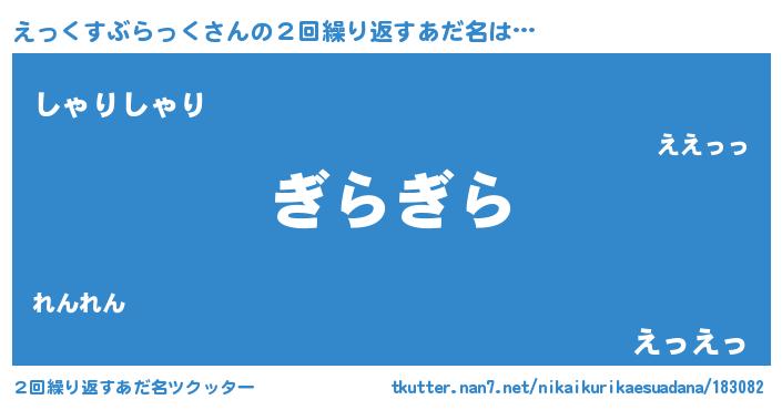 | 胡散臭い通販商品みたいなあだ名 | 『来世でも幸せになれる水素水…その名も「えっくすぶらっく」』 |