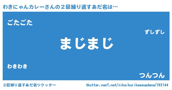 | 女子向けラノベタイトル風あだ名 | 『わきにゃんカレーなんてお断りですっ。』 |