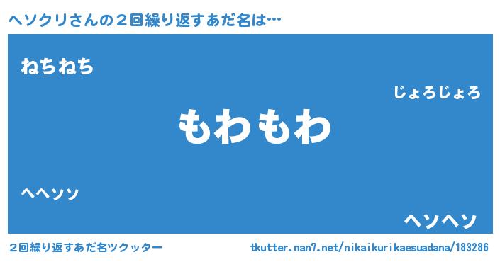 | 意味不明あだ名 | 『自称ヘソクリ』『ペロリンヘソクリ』 |