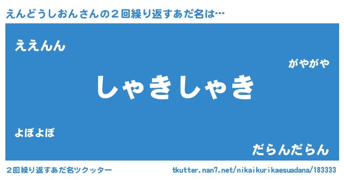 | 意味不明あだ名 | 『住所不定無職えんどうしおん(89歳)』 |