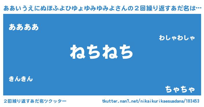 | 欧米人風あだ名 | 『ウサインああいうえにぬほふよひゆょゆみゆみよ』 |