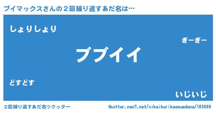 | 意味不明あだ名 | 『ブイマックスフォーエバー』 |