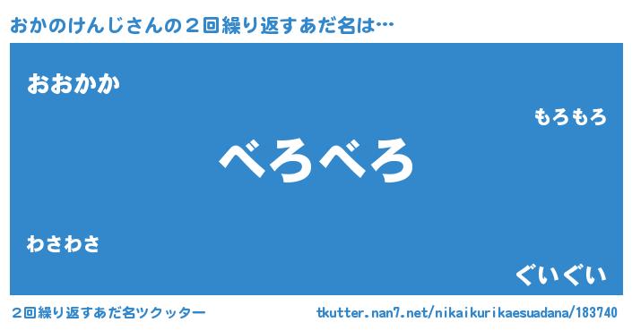 | 男性向けラノベタイトル風あだ名 | 『おかのけんじに滅ぼされるだけの簡単なお仕事です』 |