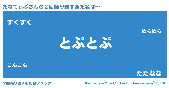 | 意味不明あだ名 | 『住所不定無職たなてぃぶ(3歳)』 |