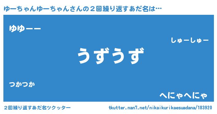 | 男性向けラノベタイトル風あだ名 | 『ダンジョンにゆーちゃんゆーちゃんを求めるのは間違っているだろうか』 |