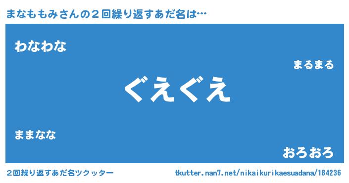 | ヘコむあだ名 | 『まなももみ(遠い目)』『まなお』 |