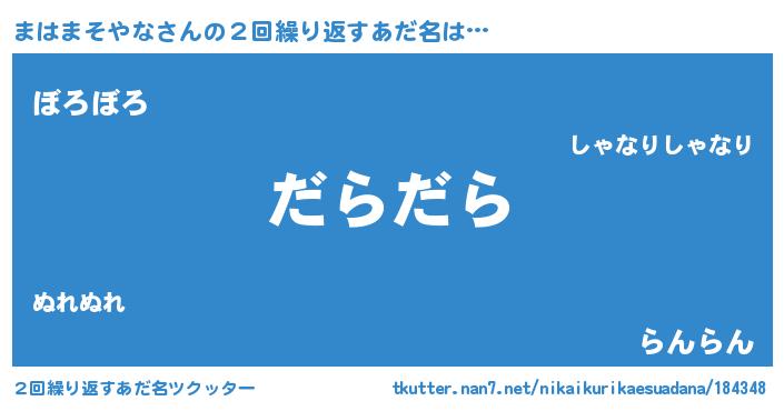 | 欧米人風あだ名 | 『まはまそやな・ステッグマイヤー』 |