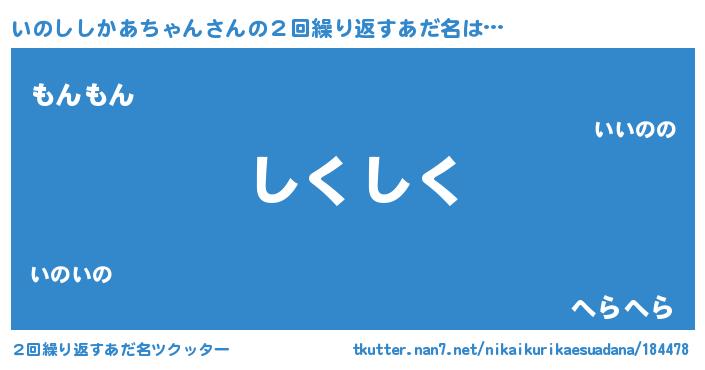 | 意味不明あだ名 | 『住所不定無職いのししかあちゃん(14歳)』 |