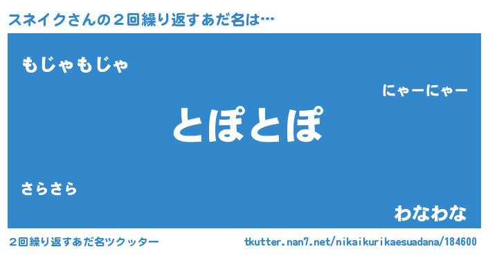 | 意味不明あだ名 | 『自称スネイク』『つくし科スネイク属』 |