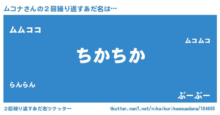 | 男性向けラノベタイトル風あだ名 | 『緋弾のムコナ』『ムコナの憂鬱』 |