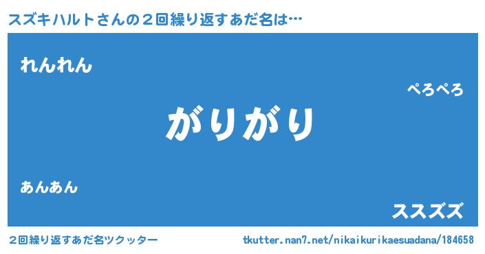 | 意味不明あだ名 | 『永久保存スズキハルト』 |