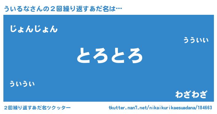 | 意味不明あだ名 | 『住所不定無職ういるな(81歳)』 |