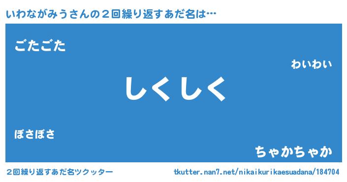 | ヘコむあだ名 | 『いわながみう(苦笑)』『いわっ子』 |