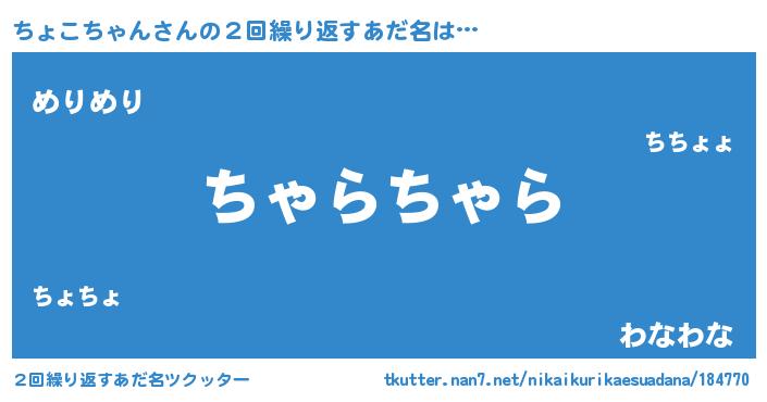 | ヘコむあだ名 | 『牛乳』『ちょもー』『ちょぷりん』 |