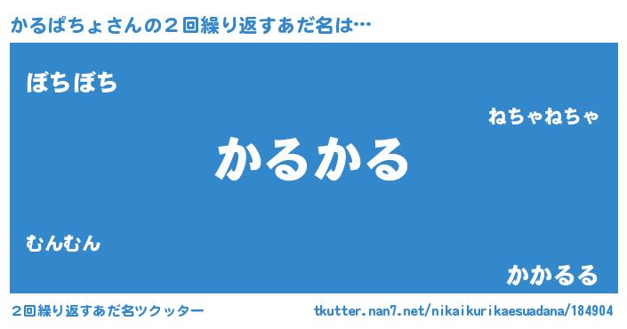 | 意味不明あだ名 | 『ペロリンかるぱちょ』『自称かるぱちょ』 |