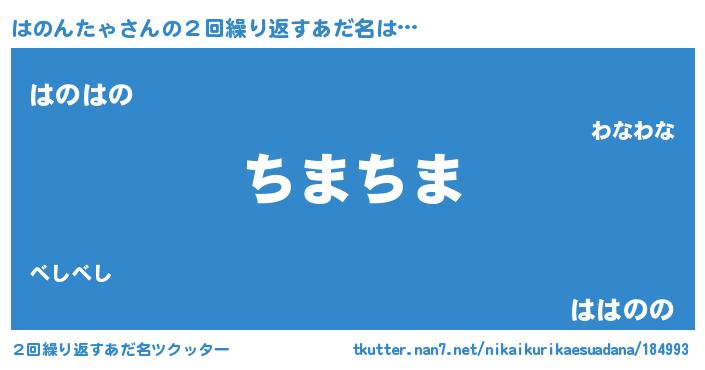 | 欧米人風あだ名 | 『はのんたゃ・ステッグマイヤー』 |