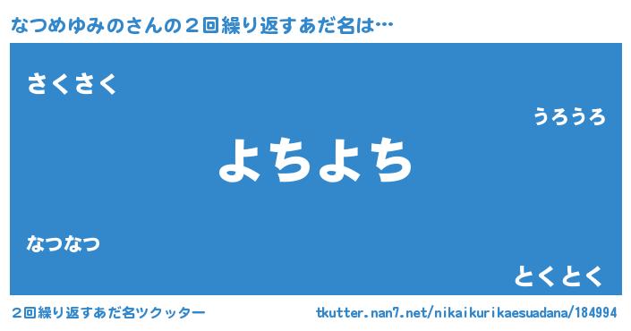 | 欧米人風あだ名 | 『アンジェラ・なつめゆみの』 |