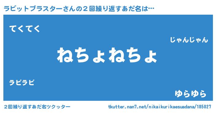 | 男性向けラノベタイトル風あだ名 | 『ラビットブラスターの嫁は女の子じゃないと思った?』 |