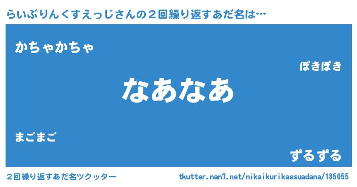 | ヘコむあだ名 | 『らいを』『らいぶりんくすえっじ(遠い目)』 |