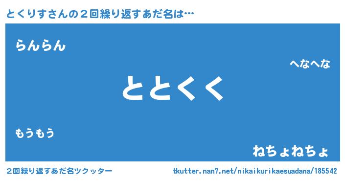 | 意味不明あだ名 | 『とくりすフォーエバー』『自称とくりす』 |