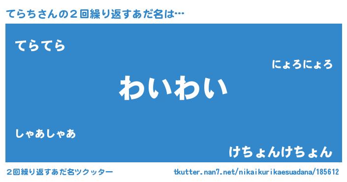 | 男性向けラノベタイトル風あだ名 | 『転生したらてらちだった件』 |