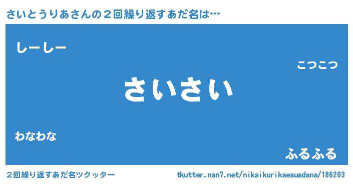 | 恥ずかしいあだ名 | 『プリティーさいとうりあ』『さいちん』 |
