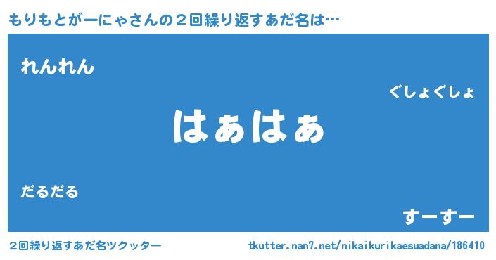 | ヘコむあだ名 | 『もりもとがーにゃ(遠い目)』『豆乳』 |