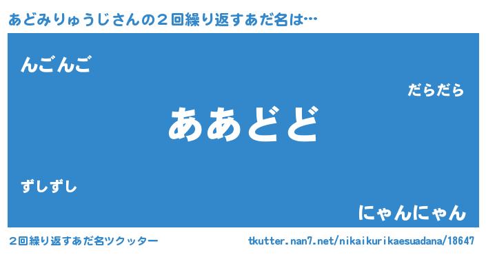 | 欧米人風あだ名 | 『あどみりゅうじクリステル』 |