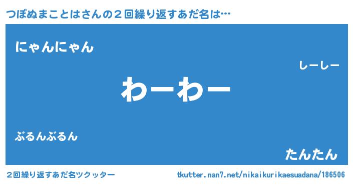 | 意味不明あだ名 | 『なめこ科つぼぬまことは属』 |