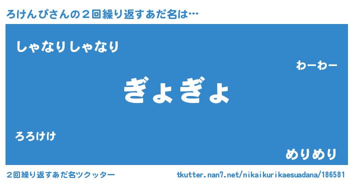 | 意味不明あだ名 | 『永久保存ろけんぴ』『自称ろけんぴ』 |