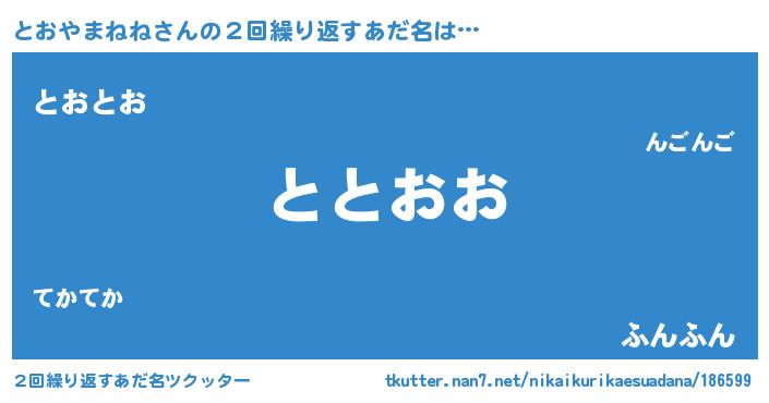 | 意味不明あだ名 | 『とおやまねねフォーエバー』 |