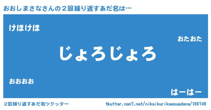 | 意味不明あだ名 | 『住所不定無職おおしまさな(95歳)』 |