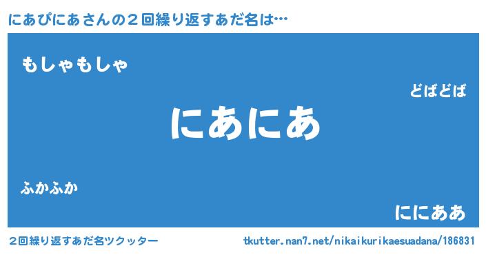 | 意味不明あだ名 | 『ペロリンにあぴにあ』『自称にあぴにあ』 |