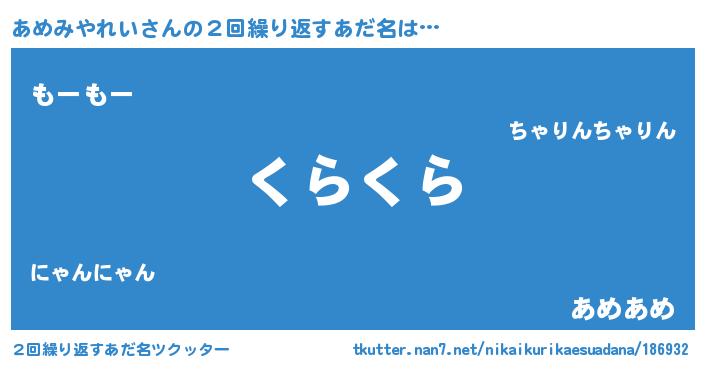 | 意味不明あだ名 | 『永久保存あめみやれい』 |