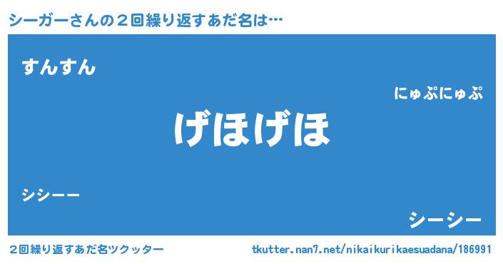 | 意味不明あだ名 | 『永久保存シーガー』『ペロリンシーガー』 |