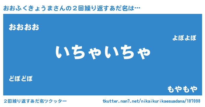 | 意味不明あだ名 | 『とにかく怪しいおおふくきょうま』 |
