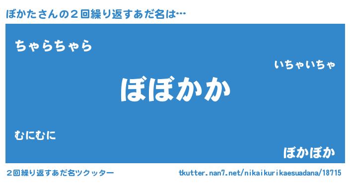 | 意味不明あだ名 | 『ぼかたフォーエバー』『ペロリンぼかた』 |