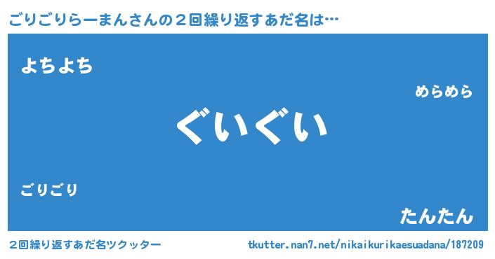 | ヘコむあだ名 | 『ごりごりらーまん(遠い目)』『ごりぷりん』 |
