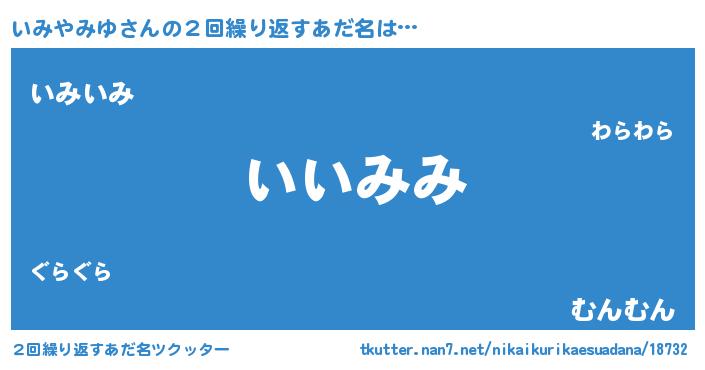 | 欧米人風あだ名 | 『いみやみゆクリステル』 |