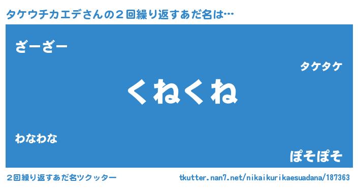 | ヘコむあだ名 | 『タケウチカエデ(小並感)』『タケっふぃ~』 |