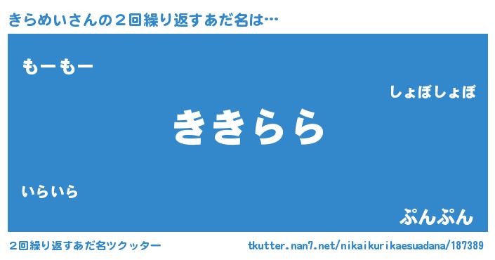 | 意味不明あだ名 | 『きらめいフォーエバー』『自称きらめい』 |