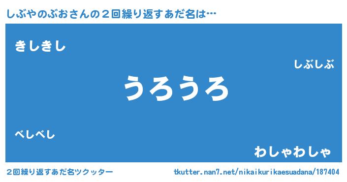 | 意味不明あだ名 | 『とにかく怪しいしぶやのぶお』 |