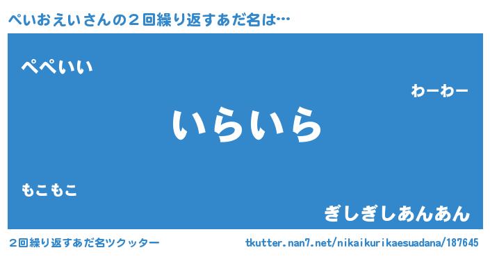 | 男性向けラノベタイトル風あだ名 | 『ダンジョンにぺいおえいを求めるのは間違っているだろうか』 |