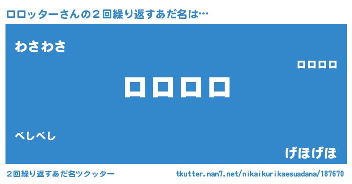 | ヘコむあだ名 | 『ロロっふぃ~』『ロロッター(苦笑)』 |