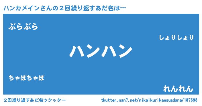 | 男性向けラノベタイトル風あだ名 | 『ハンカメインの憂鬱』 |