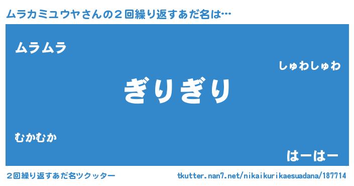 | 意味不明あだ名 | 『永久保存ムラカミユウヤ』 |